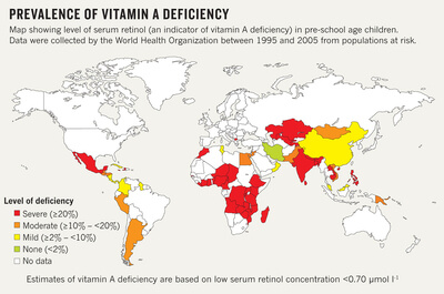 ONU. (s.f.). Prevalencia mundial de la carencia de vitamina A en la población en riesgo, 1995-2005. Recuperado de https://www.who.int/vmnis/database/vitamina/x/es/, [2021, 27 de febrero]